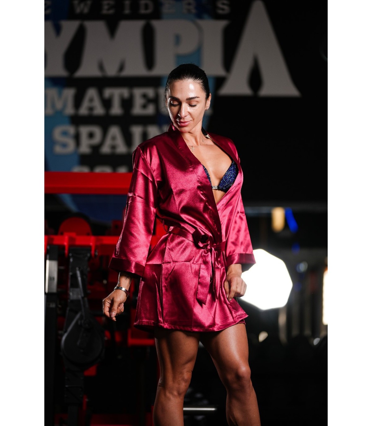 Descubre nuestra exclusiva bata de competición diseñada para atletas de fitness y culturismo que buscan destacar en cada presentación. Confeccionada en poliéster de alta calidad, esta bata ofrece un tacto sedoso y una caída elegante, proporcionando la combinación perfecta entre comodidad y estilo.