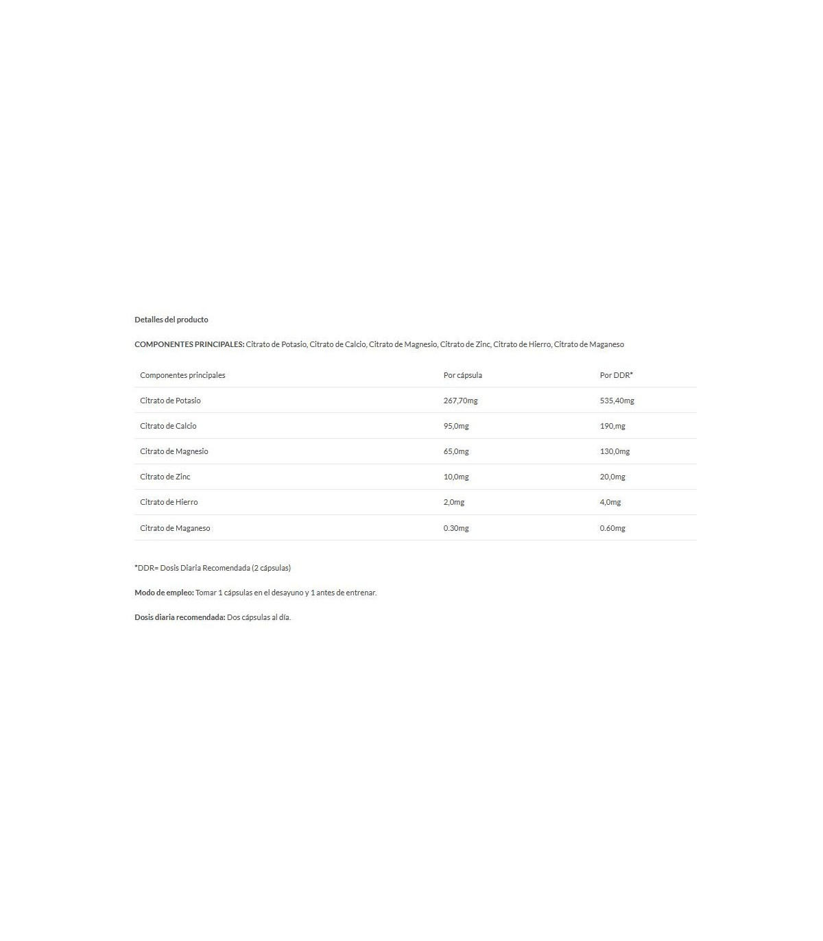 Contiene un 79-85% de citratos que permiten bloquear la acidez, gracias a su estructura básica formando una sal neutra. El estrés y el agotamiento y la falta de sueño aumentan el porcentaje de acidez del cuerpo. La mezcla de minerales básicos (calcio, magnesio y potasio) son una ayuda inestimable para neutralizar y favorecer la eliminación de substancias ácidas que dañan nuestro organismo.