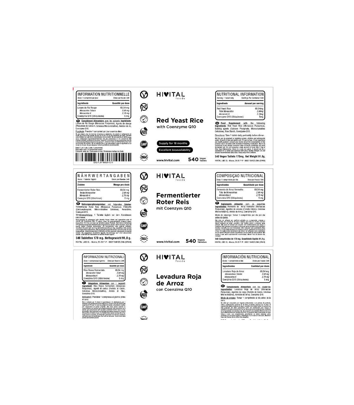 MÁXIMA CALIDAD Y GARANTIA DEL 100%: Nuestro producto está libre de Citrininas, es Vegano, Sin Gluten, Sin Lactosa, Sin Soja, Sin Estearato de Magnesio, Sin Azúcar, Sin Conservantes ni Colorantes, Sin aromas añadidos, No transgénico (GMO Free), Fabricado en España bajo certificados GMP e ISO | Hivital Foods está registrada en AECOSAN con número 26.019181B | Y además, 100% SATISFACCIÓN GARANTIZADA ¡Si no quedas completamente satisfecho, te devolvemos tu dinero!