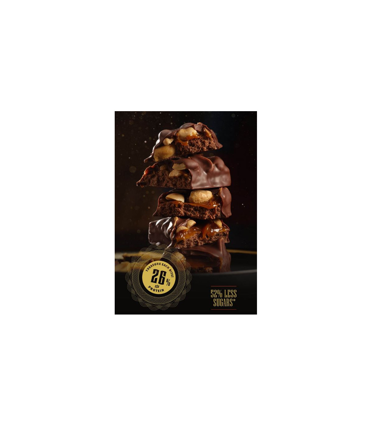 • Cacao de calidad, delicioso caramelo y TROZOS de cacahuete crujiente.
