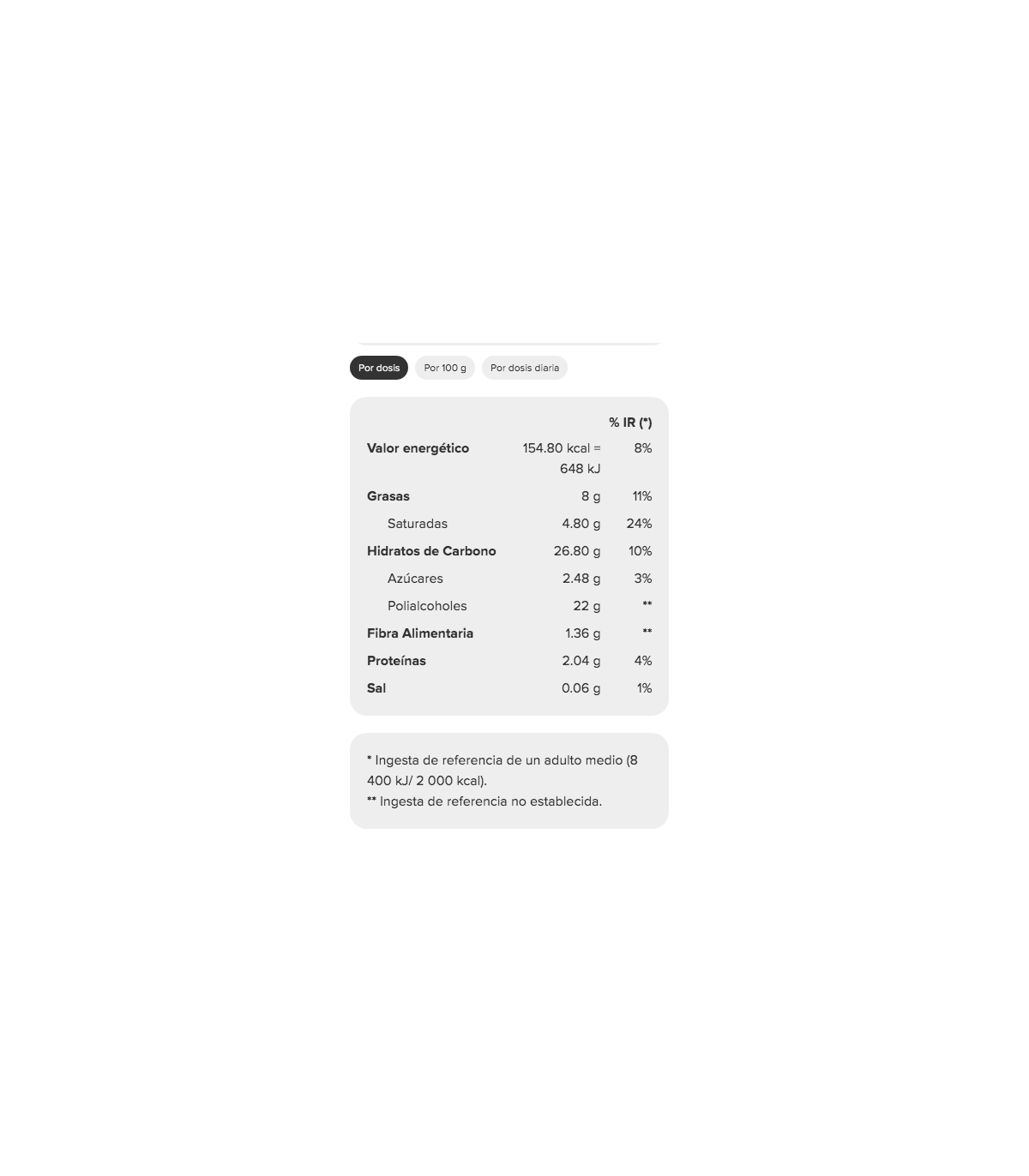 *Contiene azúcares naturalmente presentes.