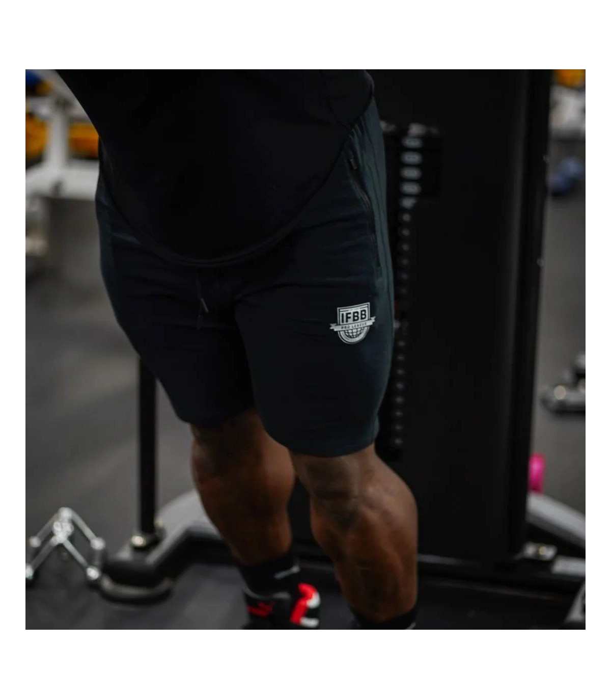 Exclusivo logotipo de la insignia IFBB en la pierna izquierda