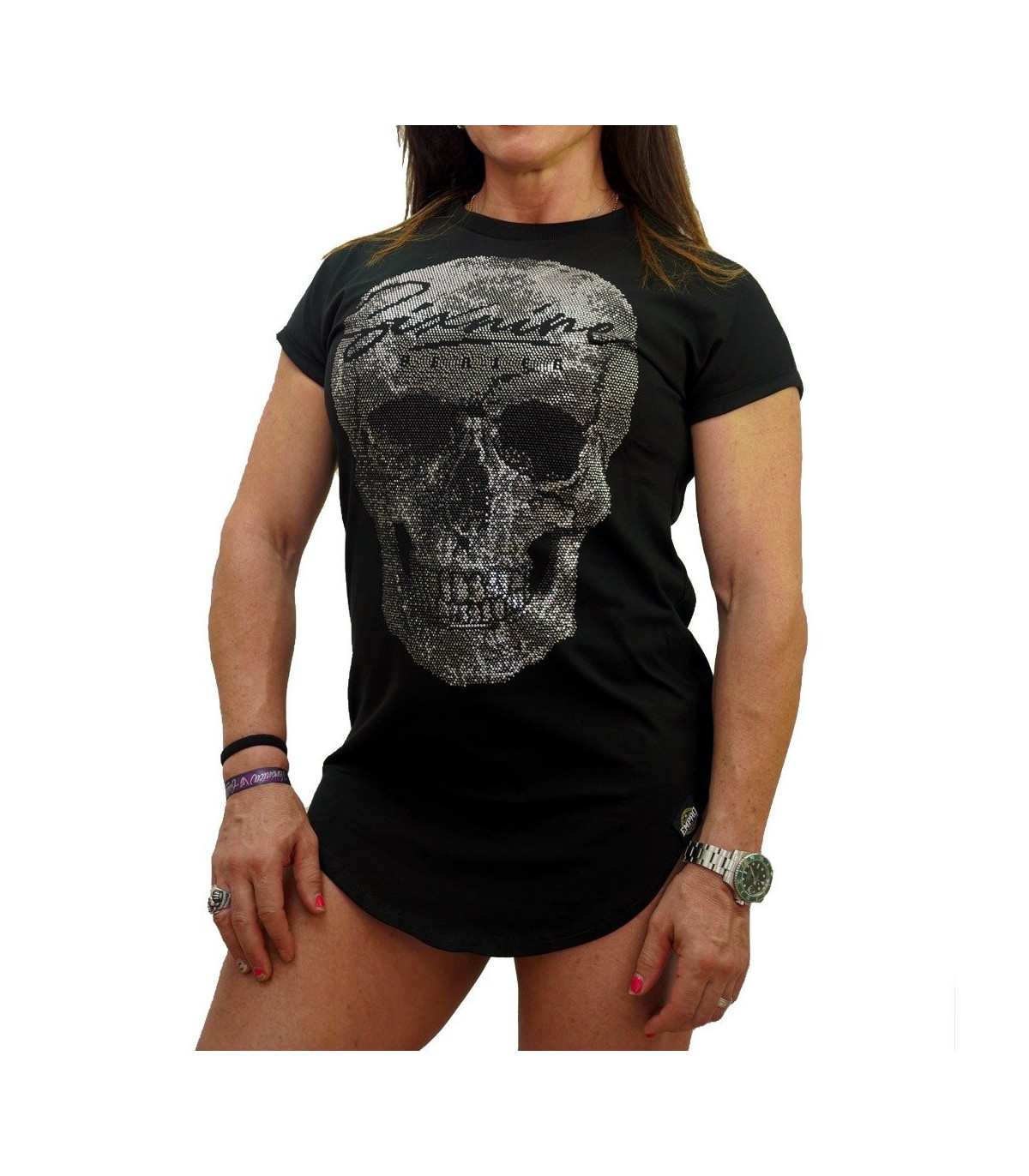 A la mayoría de las mujeres le gustan los brillos ¿eres tu una de ellas? Pues te va a encantar nuestro vestido de calavera con brillantes. Es más corto a los lados para que le de un estilo más sexy. Es informal, pero a la vez elegante y combinable tanto con deportivas o con unos buenos tacones. Sea como sea tu estilo, con ella causarás sensación.