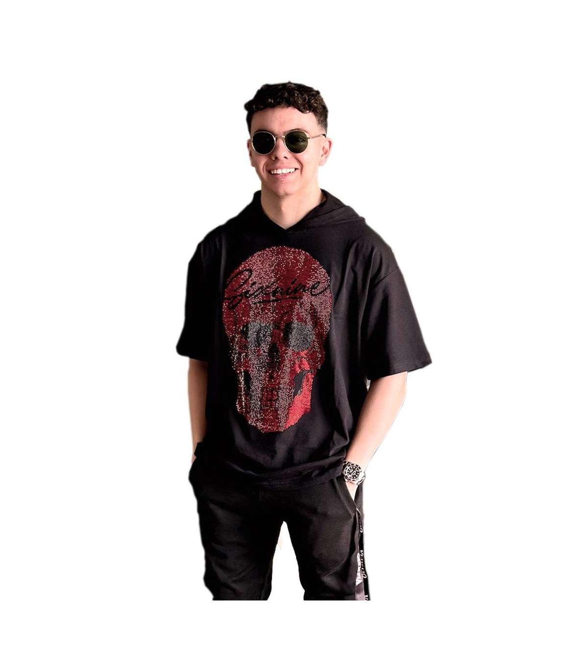 Camiseta oversize Calavera Brillante con Capucha Sixnine Roja