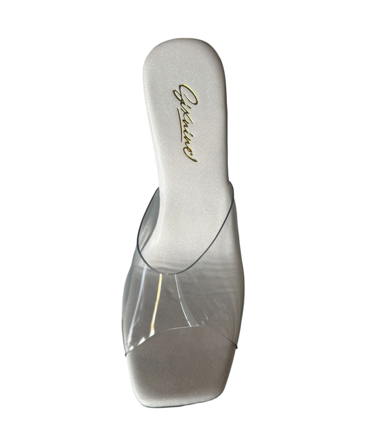 Sandalia transparente y elegante, con un toque moderno y sofisticado.